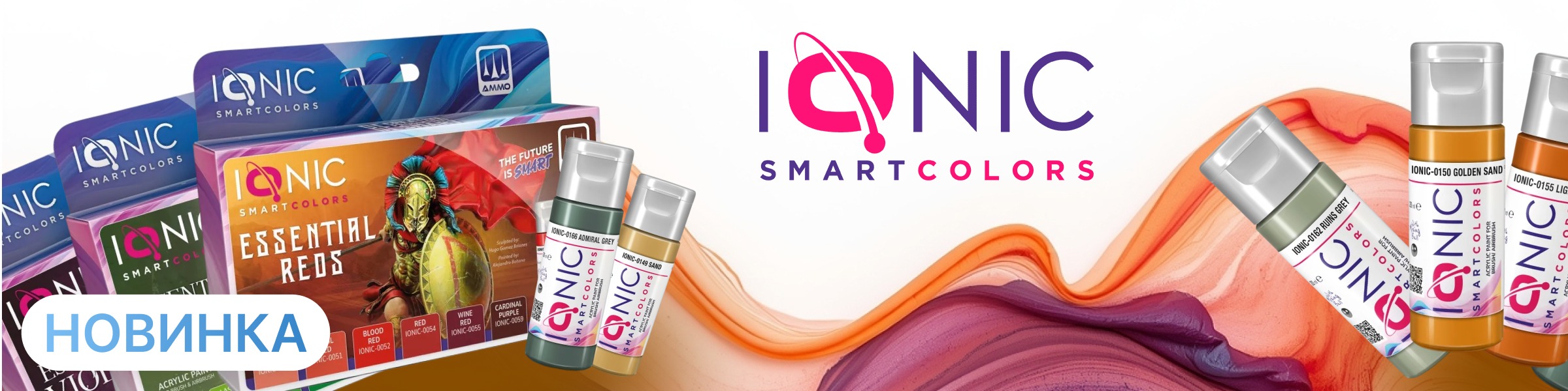 Откройте для себя Ionic Smart Colors — современную акриловую краску с отличной укрывистостью и насыщенными цветами. Эти краски легко ложатся кистью и аэрографом, быстро сохнут и дают ровный матовый слой без разводов. Палитра оптимизирована для точной проработки деталей и мягких переходов, идеально подходит для исторических, фэнтези и sci-fi миниатюр.