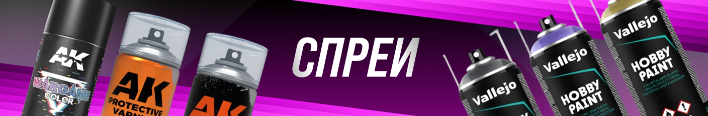 Если вы ищете Vallejo Aerosols купить, аэрозольные краски Vallejo, грунты Vallejo для миниатюр или спреи Vallejo для Warhammer, в этом разделе вы найдёте полный ассортимент аэрозольных красок и грунтов Vallejo для комфортной и качественной работы.