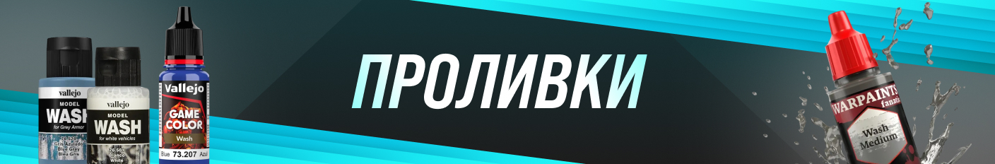 В этой категории представлены проливки Vallejo Model Wash для миниатюр, которые равномерно растекаются по углублениям модели, подчёркивая линии, панели, заклёпки и текстуры. Они отлично подходят для работы с бронёй, тканью, кожей, техникой и элементами окружения.
