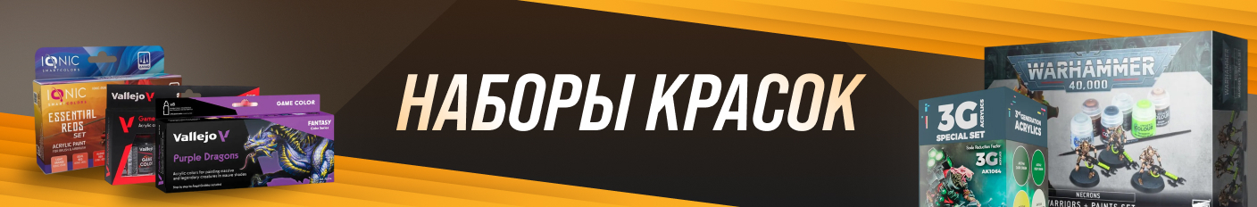 Благодаря набору «WH40K. Paints + Tools Set (2023)» вы сможете без труда начать собирать и красить ваши первые миниатюры. Всё, что вам понадобится – несколько баночек для воды, чтобы мыть кисть и разбавлять краску.