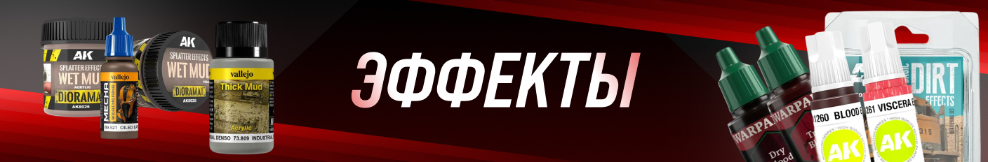 Vallejo Weathering Effects для Warhammer и моделизма просты в использовании и подходят как для начинающих, так и для опытных хоббистов. Эффекты можно наносить кистью, комбинировать с пигментами, проливками и красками Vallejo Game Color и Model Color, добиваясь глубокого и выразительного результата.