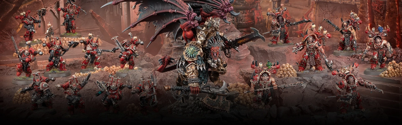 В наборе 88 пластиковых деталей и три круглые подставки диаметром 40мм, а также лист декалей Пожирателей Миров с 200 элементами, включающими символы Кхорнитов, рунические татуировки, восьмиконечные звезды, черепа и вариации символа Легиона Пожирателей Миров.