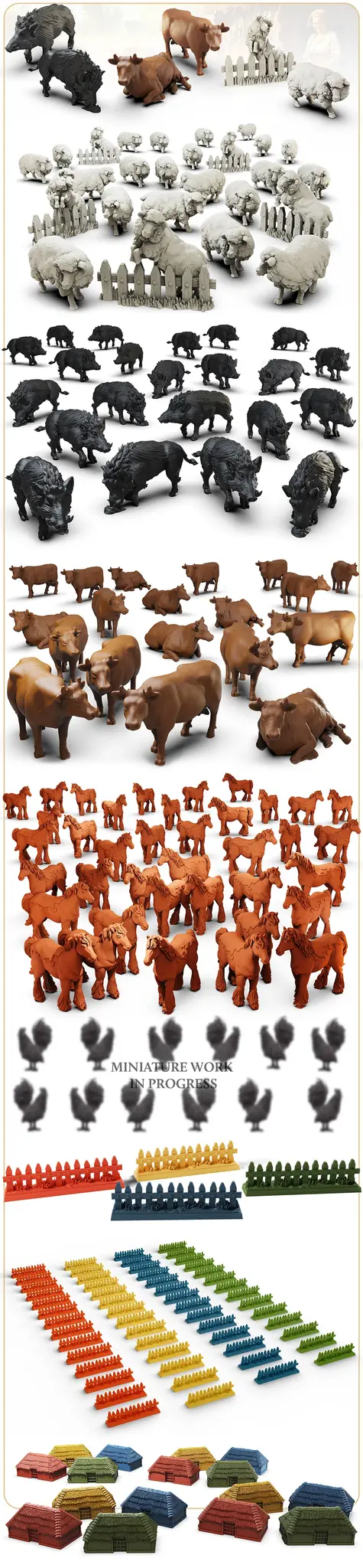 Набор детализированных миниатюр, который заменяет стандартные жетоны и оживляет ваш игровой дворик. Фигурки животных, заборов и построек выполнены с высоким уровнем проработки и прекрасно вписываются в атмосферу фермы.