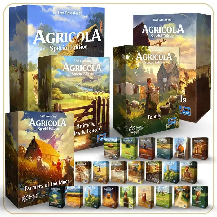 Agricola: Special Edition возвращает к жизни культовую настольную игру Уве Розенберга, предлагая потрясающее новое оформление, улучшенную эргономику и огромное количество контента. Это масштабное издание, созданное в сотрудничестве студий Lookout Games и Awaken Realms, включает все ранее выпущенные дополнения, а также представляет совершенно новое расширение - Irrigations, в котором игрокам предстоит управлять водными ресурсами, чтобы поддерживать и развивать свои фермы.