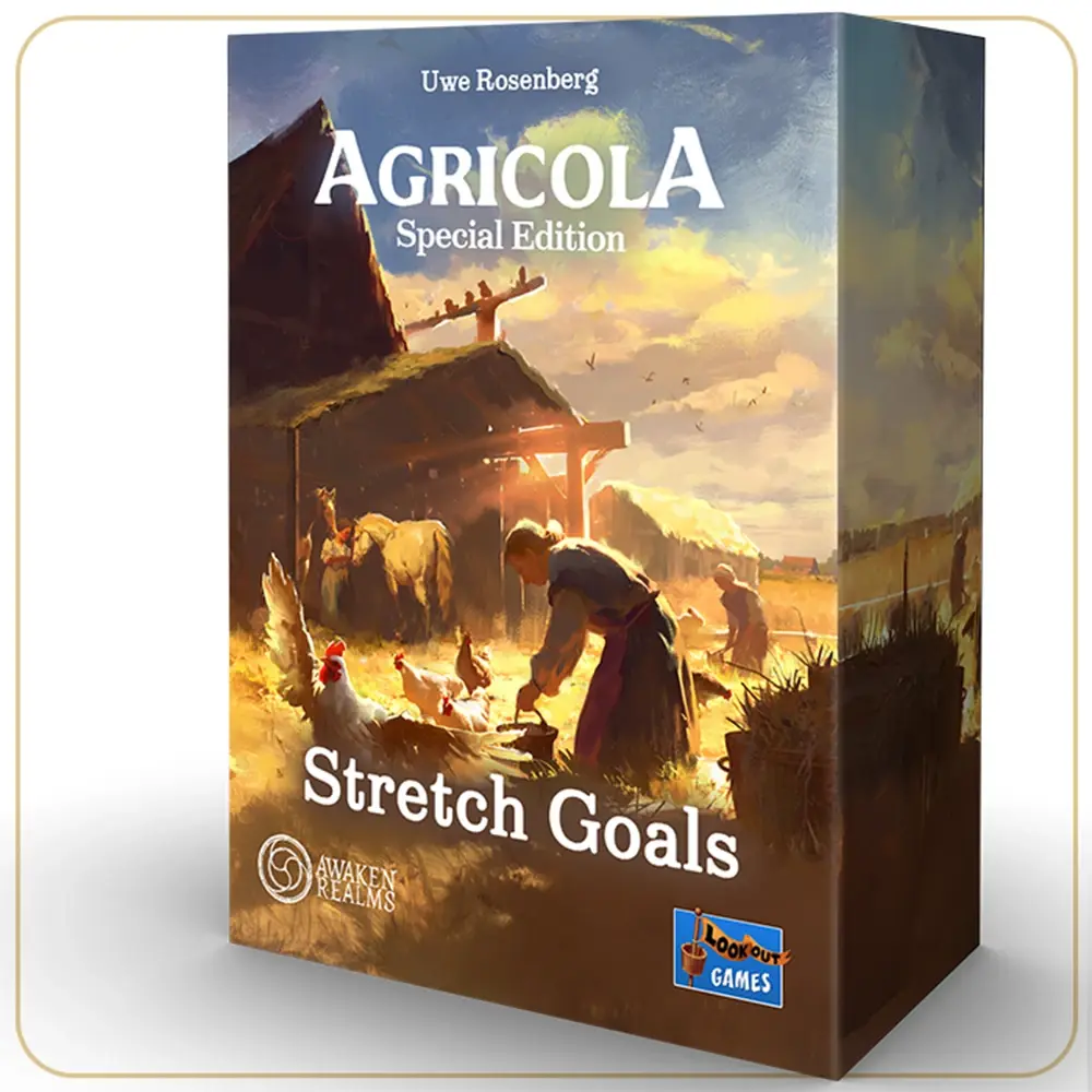 - Стандартное издание Agricola с деревянными миплами и все разблокированные цели кампании (также с миплами). В комплект входит дополнение Farmers of the Moor и другие заявленные колоды.