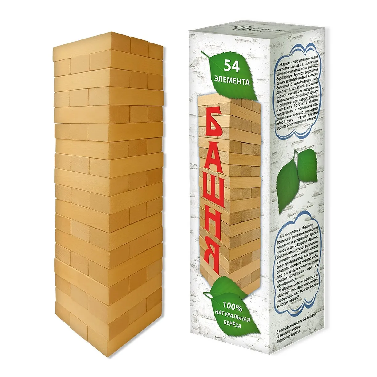 Как выиграть в «Башню». Побеждает тот, кто последним достанет брусок и не обрушит башню. Действовать нужно аккуратно и внимательно, а также стоит сразу продумывать, как именно ставить элемент наверх: ведь это зачастую сложнее, чем просто вытащить его из «фундамента». Высокая получается башня? Если опытные и аккуратные игроки, то башня получается очень высокая: со стороны кажется, что если на неё сядет бабочка, вся конструкция рухнет. Многие строят высокую башню не в рамках игры, а просто на интерес — например, чтобы с ней сфотографироваться или чтобы красиво её уронить. Кстати, падение «Башни» изучается в американских школах на уроках физики. Почему эта игра полезна для детей? Во-первых, «Башня» очень хорошо развивает мелкую моторику, то есть активизирует участки мозга, отвечающие за сенсорику и мышление. Известно, что подобные игры способствуют профилактике различных сердечно-сосудистых заболеваний в старости и существенно ускоряют интеллектуальное развитие ребёнка. Во-вторых, «Башня» учит пространственному и архитектурному мышлению: представить, какой брусок менее нагружен, чтобы вытащить его — задача достаточно сложная, но очень нужная ребёнку. В-третьих, игра "Башня" развивает командный дух: дети могут играть в неё вместе и улучшать свои навыки коммуникации. В-четвёртых, «Башня» очень хороша в качестве семейной игры: ведь в неё интересно играть и детям, и взрослым.