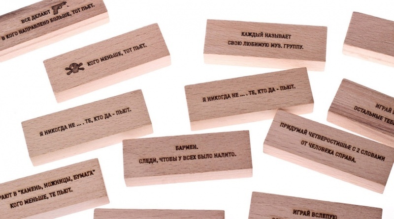 Эта версия мало чем отличается от классической игры – здесь присутствуют те же деревянные бруски, из которых нужно соорудить башню, затем путем перемещения брусочков из основания на самую верхушку, сделать конструкцию еще выше. Это, пожалуй, все схожести с базовым вариантом, дальше начинается самое интересное. Каждый, кто достал брусок с заданием, должен сначала выполнить его, и лишь потом поместить на верхний этаж. Помимо словесных заданий вам могут встретиться особые значки. Так символ оленя означает то, что игроку необходимо сделать коктейль из всех присутствующих на столе напитков, а затем выпить его, а фотоаппарат предлагает сделать вам селфи со всеми гостями согласно заданному сюжету. По некоторым заданиям пить придется только девушкам или парням, некоторым счастливчикам понадобится сочинить четверостишие или спеть песенку. Позаботьтесь о том, чтобы вам было что пить, а остальное возьмет на себя Башня.
