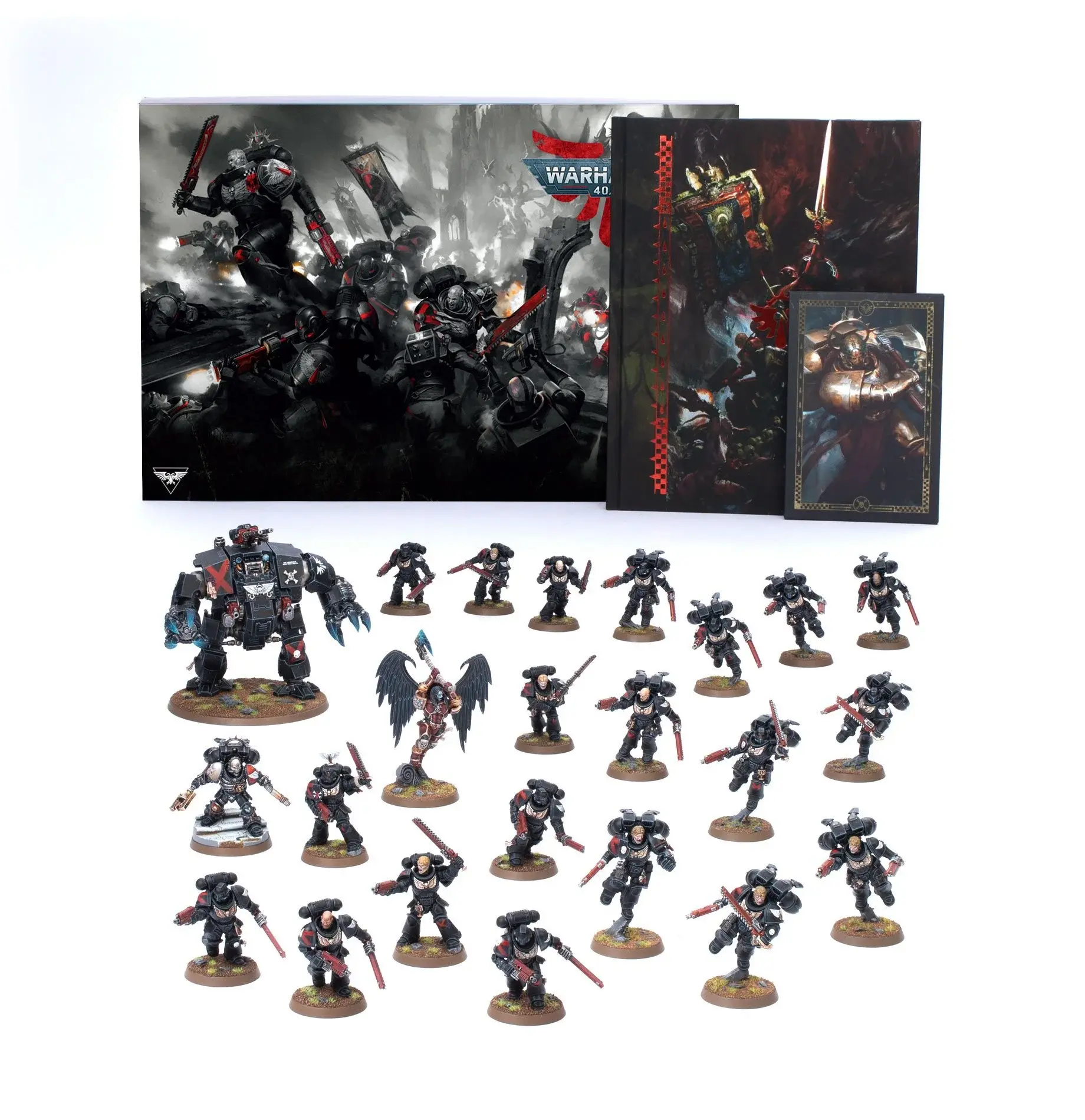 Этот набор включает в себя 23 сборные миниатюры Citadel для использования в армиях Кровавых Ангелов в играх в Warhammer 40,000. В комплект также входит дополнение Кодекса: Кровавые Ангелы — 104-страничная книга в твердом переплете с историей и описанием Кровавых Ангелов, а также правилами для применения этих войск, и 18 карточек датасхем: Кровавые Ангелы для удобства во время игры (кодекс и карты - на английском языке).