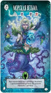 Например, с дополнением «Русалочка» вы сможете заключить договор с морской ведьмой. Это принесет вам победные очки и другие бонусы, но придется чем-то пожертвовать. При этом если вы берете жетон договора, то обязательно должны использовать его. Все неиспользованные значки приносят вам штраф по 3 очка в конце игры.
