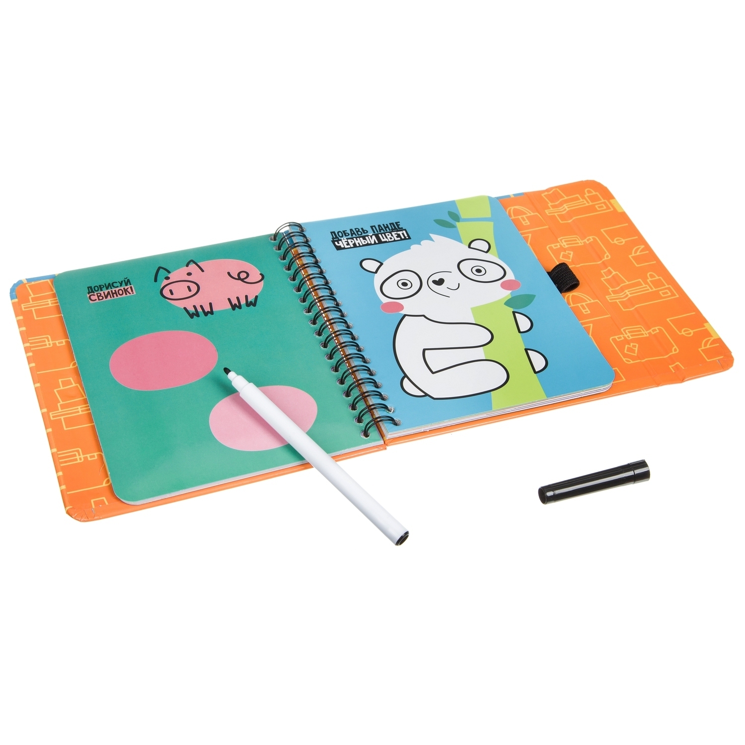 В комплекте с «Дорисуй-2 (ур. сложности начальный)» идёт маркер на водной основе, который легко стирается с карточек: нарисованные картинки легко стереть и начать заново, попробовав что-то другое.