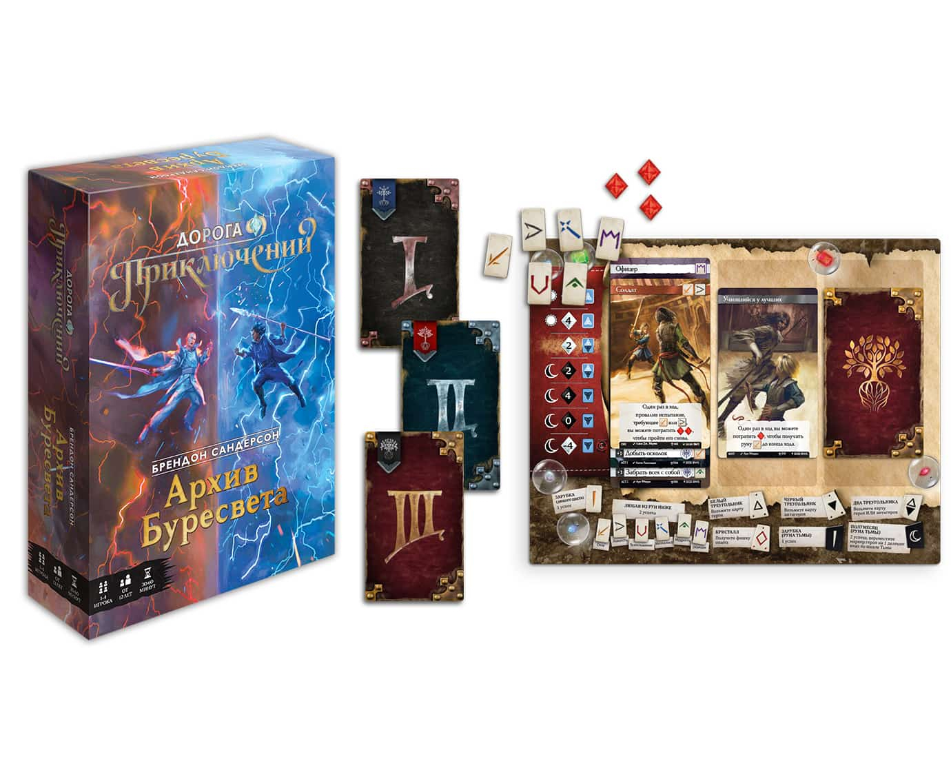 Правила игры довольно объемные, но рассчитаны на то, чтобы предусмотреть множество нюансов, ведь приключения – штука непростая и порой опасная. Однако информация на картах, памятка по ходу игры и множество подсказок позволяют легко разобраться в правилах и превратностях судьбы. Если вы уже знакомы с Дорогой Приключений, игровой процесс не покажется вам сложным, зато подарит массу новых ярких впечатлений. В Архиве Буресвета появляется механика знака Сияющих, открывающая героям новые возможности и шанс присоединиться к рядам Сияющих рыцарей, стоящих на страже Рошара с давних времен.