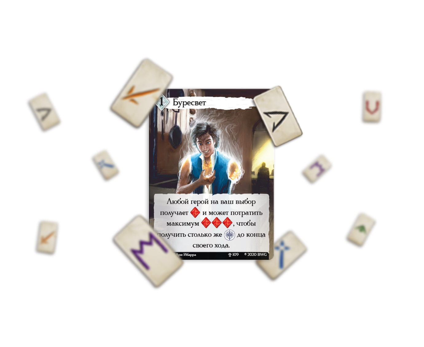 Разыгрывая карты героя и антигероя, вы также прибегаете к услугам сил света или тьмы, помогаете себе или мешаете соперникам, заодно определяя свое положение на шкале Тьмы. Однако, в мире, где нет непогрешимого добра или чистого зла, надежный союзник может обернуться предателем, а в борьбе с бурями все средства хороши. Противостоять воле рока поможет тактика, расчет, умение использовать свои сильные стороны и вовремя обращаться за поддержкой к высшим силам. Побеждайте в испытаниях, собирайте лучшие карты и создавайте свою историю, чтобы стать сильнее и набрать как можно больше победных очков. Помните – выбор пути за вами, а судьба благоволит смелым!