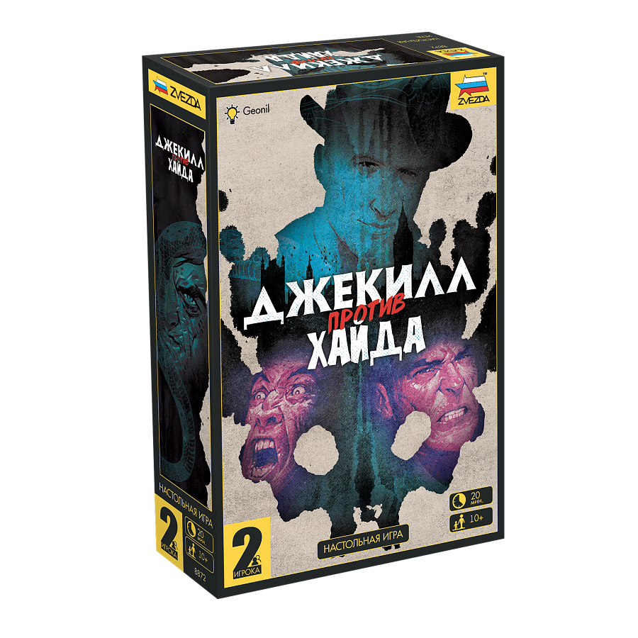 Дуэльная игра, основанная на классическом произведении классическом произведении Роберта Льюиса и проиллюстрированная непревзойдённым Венсаном Дютре. Один игрок станет выдающимся доктором Джекиллом, другой — его альтер-эго, ужасным мистером Хайдом. В конце каждого раунда личность доктора будет постепенно исчезать под безжалостными атаками Хайда. Кто выйдет победителем в борьбе за душу и тело?