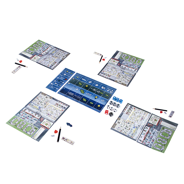 В игре «Город моторов» каждый раунд вы будете решать, какие кубики выбрать и куда именно на игровом поле поместить, чтобы с их помощью выполнять действия в различных отделах автозавода. В процессе игры вам предстоит продвигаться по шкалам каждого отдела, и чем больше клеток вы закрасите, тем больше бонусов получите!