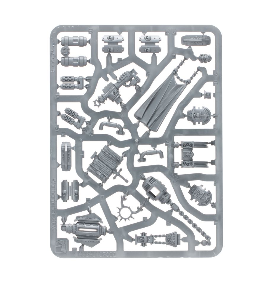 Также из набора можно собрать обычного Nemesis Dreadknight с другим типом упряжи, наколенниками и выбором из двух голов - в шлеме или без него. Обе версии можно дополнительно кастомизировать декоративными элементами, включая печати чистоты и знаки отличия.