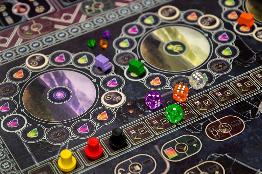 Каждый ход в настольной игре «Грандиозное представление» игроки берут кубики из общего запаса, которые определяют доступные им очки действий. Их можно потратить на строительство (ваш лагерь будет приносить вам больше бонусов), путешествия (привлекают зрителей и помогают получать самоцветы и победные очки) и представления (главная часть игры, ради которой всё и затевается).