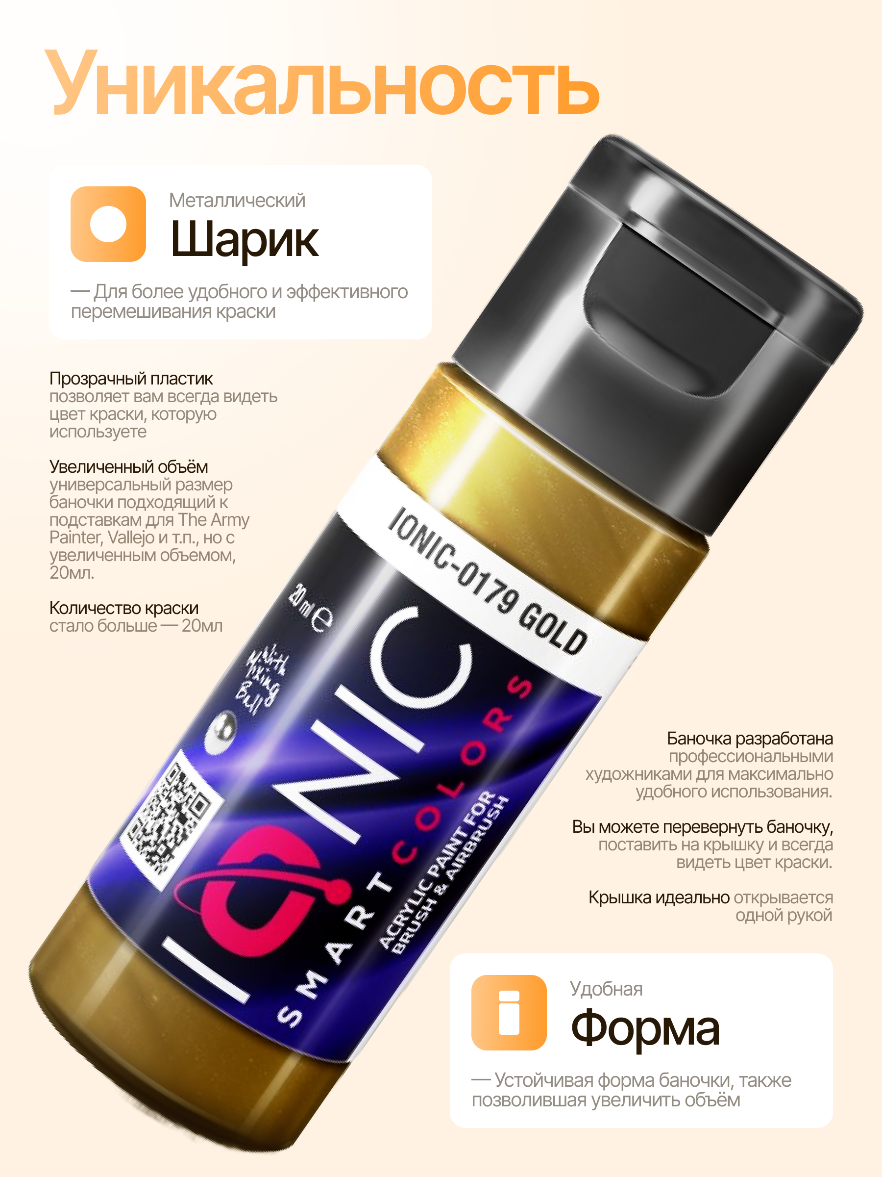 Краски Ionic Smart Colors имеют уникальную формулу, обеспечивающую лёгкий и приятный процесс покраски любых миниатюр. Независимо от того, новичок вы или опытный художник, краски Ionic наносятся плавно как кистью, так и аэрографом. Разработанные командой профессионалов, краски Ionic обеспечивают непревзойдённое покрытие, исключительную насыщенность цвета, ровное матовое покрытие и лёгкое смешивание. С Ionic каждая работа приносит удовольствие и получается именно такой, как вы задумывали.