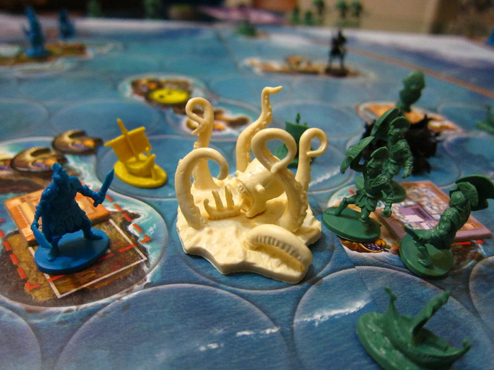Игровое поле настольной игры Киклады представляет из себя карту Балканского полуострова и окружающего его Эгейского моря с цепью остров, на которых игроки в Киклады могут строить себе новые полисы и основывать знаменитые греческие колонии. Но вот чтобы перебраться с одного острова на другой, придется позаботиться постройкой флотилии боевых или торговых судов.
