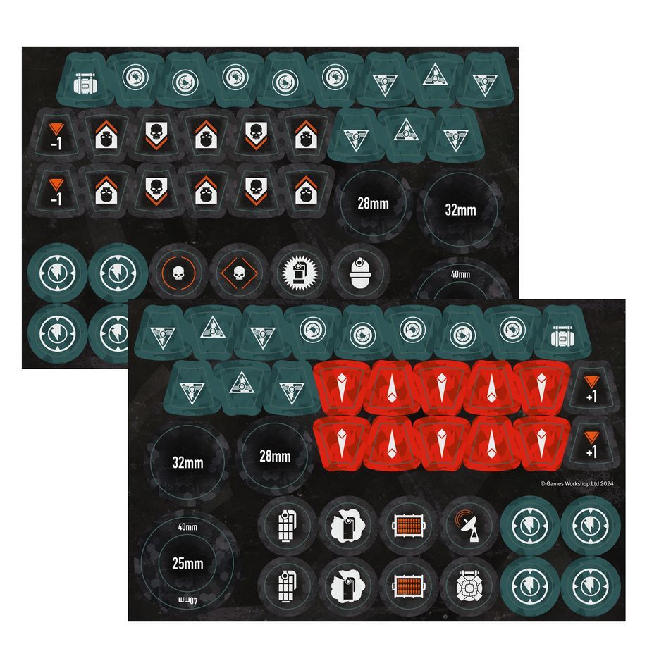 В коробке также есть лист с 28 двухсторонними жетонами Tempestus Aquilons, чтобы легко отслеживать ваше снаряжение и игровые эффекты в разгаре битвы.