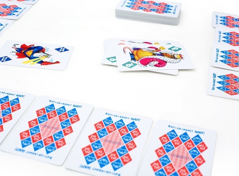 Настольная игра «Кот За Хвост Цап Делюкс» – это игра на память, внимательность и совсем немного на умение испортить жизнь соперникам. В ней перед каждым игроком лежит по четыре карты. Какие – не знает даже сам владелец. По ходу партии игроки будут меняться, подсматривать и заменять карты так, чтобы к концу у них было как можно меньше очков.
