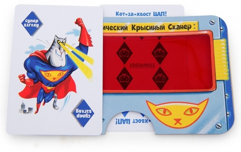 Главная фишка игры «Кот За Хвост Цап Делюкс» – специальный «сканер», очки, которые позволяют увидеть значения карт не переворачивая их. Узнать, какие карты лежат перед всеми игрокам – очень даже неплохая идея, особенно, чтобы потом забрать у кого-нибудь нужную вам карту.