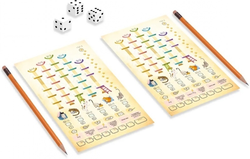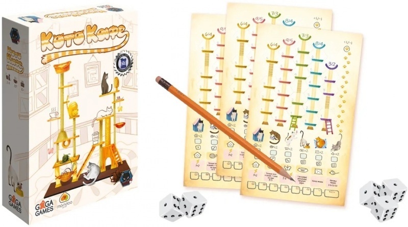 Настольная игра «КотоКафе» – это несложная в освоении игра в жанре roll-and-write: игроки бросают кубики и что-то пишут, зачёркивают или рисуют в зависимости от того, что выпало на кубиках. В этой игре, например, игроки обустраивают башни игрушками и угощениями, чтобы приманить к себе котиков и погладить как можно больше пушистых обитателей котокафе. Ну и получить за это побольше победных очков ;)