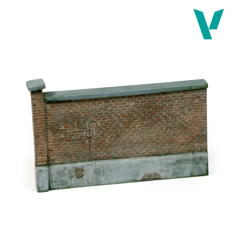 Фрагмент старой кирпичной стены в сельском стиле, отлитый с двух сторон. Включает вертикальную опору для рекламной вывески и завершающую колонну.