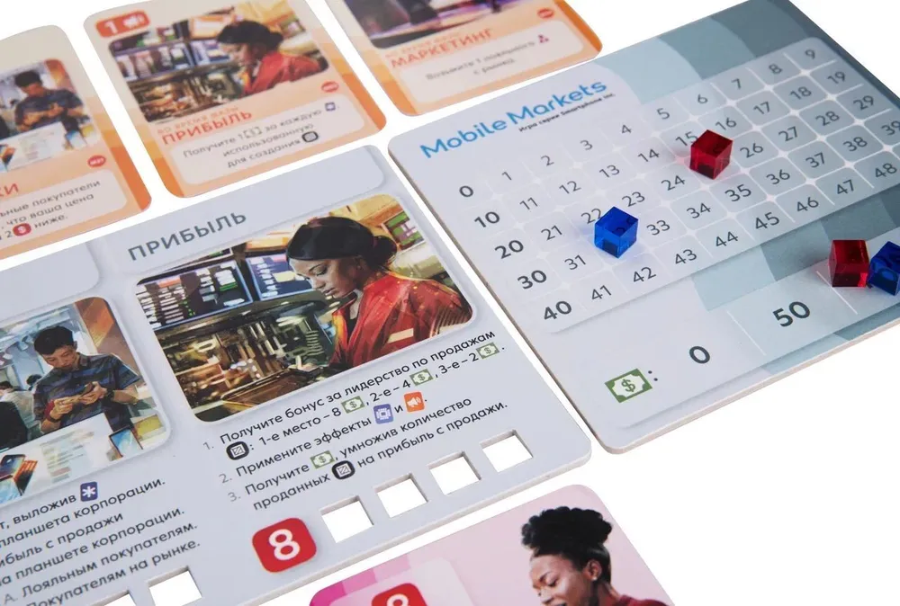 Это родственник легендарной настольной игры «Корпорация "Смартфон», она идейно продолжает эту линейку. От своего предшественника "Mobile Markets" взял самое лучшее и добавил новые фишки. Теперь игра стала динамичнее, а конкуренция в ней ещё жёстче. Придумайте лучший смартфон и маркетинговую стратегию, чтобы обойти конкурентов.