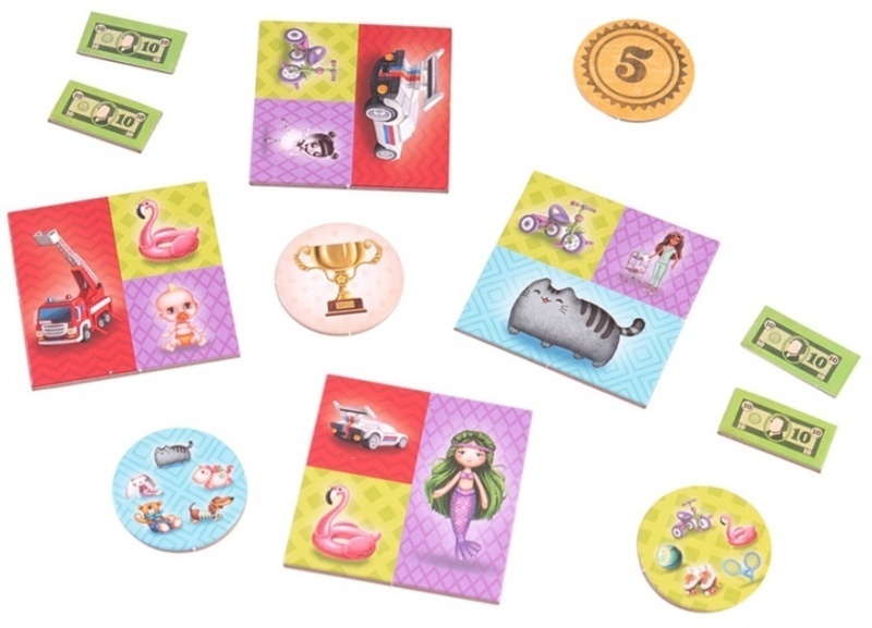 Чем больше игрушек одного типа будут находиться рядом в настольной игре «Мой магазин игрушек», тем больше монет – то есть победных очков – вы будете получать. Кроме того, победные очки можно получить за самую разнообразную коллекцию игрушек одного типа и за максимальное количество одинаковых игрушек.