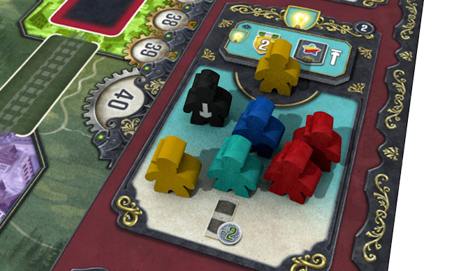 Дополнение вводит механику Двора, которая значительно углубляет стратегический слой игры. Теперь ваши рабочие могут выступать в роли политиков, присоединяясь к различным партиям. Каждая партия даёт немедленные бонусы - талеры, тайлы действий, победные очки и жетоны достижений.