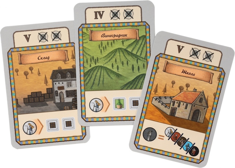 Места с действиями в Жанне д’Арк представлены небольшой колодой карт, которые добавят вашим партиям больше реиграбельности. Но для экономии места, например в дороге, их можно не доставать вовсе — часть из них продублирована ячейками на игровом листе.