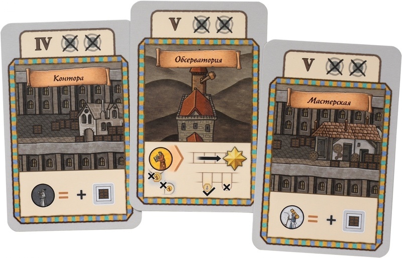 Результат этих действий отмечается на вашем игровом листе. Получаемые товары зачёркиваются в кладовой, деньги — в банке, путешествия и фактории — на карте Орлеана и так далее. При этом все области взаимосвязаны: зачёркиваешь ячейку в одном месте — получаешь бонус в другом. Такие цепочки помогают выстраивать многоуровневые комбинации и выполнять несколько действий за один ход.