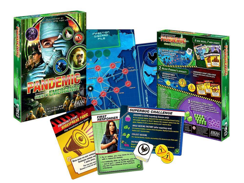 Дополнение Pandemic: State of Emergency в очередной раз покажет игрокам все несгибаемость человеческой воли в борьбе с угрозой. Отважные профессионалы со всех концов планеты вновь соберутся вместе, чтобы уничтожить новые болезни и спасти жизни миллионов, победив вирусы. Дополнение Pandemic: State of Emergency - это большой набор дополнительных правил, который сделает игровой процесс класиической "Пандемии" еще реалистичнее и интереснее! Предугадывайте пути заражения, ликвидируйте заразу и молитесь всем богам, чтобы все пошло по плану и не возникли новые форс-мажорные обстоятельства!