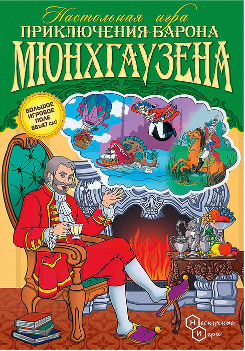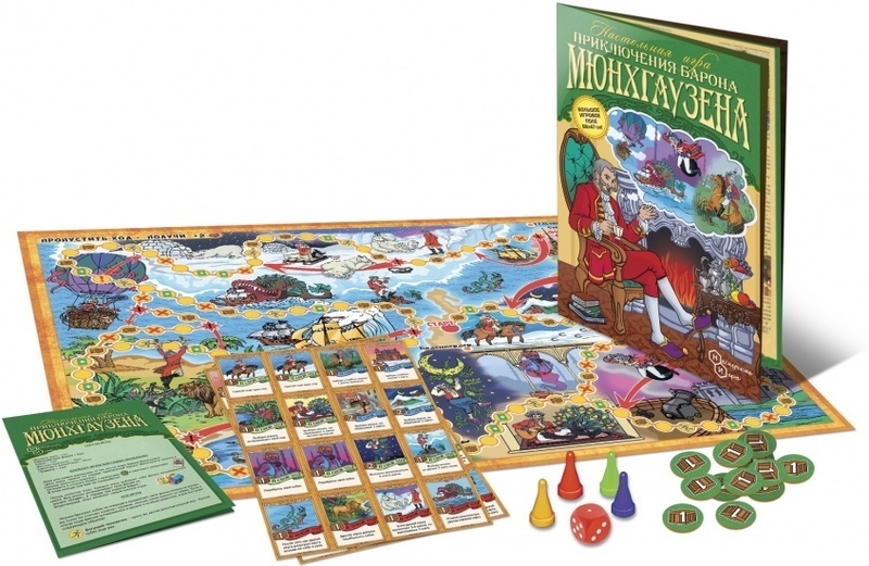 Настольная игра «Приключения Барона Мюнхгаузена» – это настольная бродилка по мотивам всемирно известной книги. Разумеется, обычным бросанием кубика в ней дело не ограничивается – как и литературный прототип, она представляет собой интересное и весёлое приключение.
