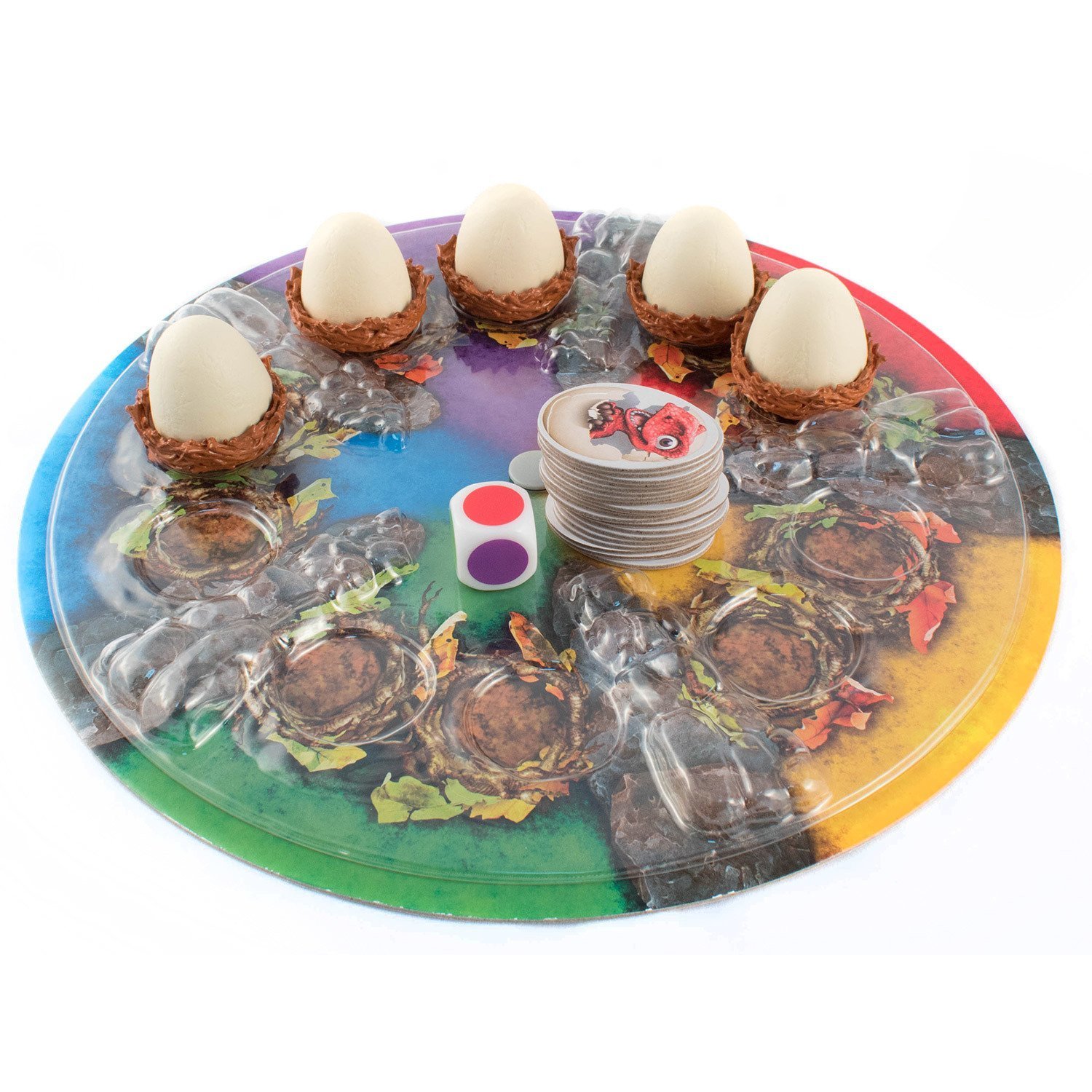 Настольная игра «Привет, Дино!» – это быстрая и весёлая детская игра на внимательность, в которой игрокам нужно находить спрятавшихся по скорлупой яиц динозавриков разных цветов. Поле игры постоянно меняется, поэтому чтобы победить в игре, игрокам придётся быть максимально внимательными и хорошо всё запоминать.