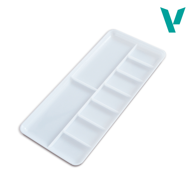 Палитра служит для смешивания красок или разведения красок или проливок. Множество отделений разных размеров позволяют работать с несколькими красками одновременно (а в некоторых отделениях может быть вода, разбавители и т.п.). Благодаря удобной форме палитру легко мыть и хранить.
