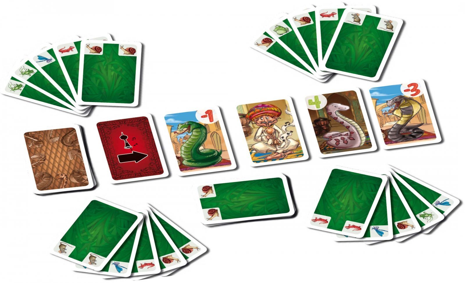 В настольной игре Пунги вам нужно будет сперва приманивать к себе ядовитых змей. Для этого мастеру Пунги потребуется приманка - ящерицы, мыши, кузнечики и прочие зверьки из рациона ползучих рептилий. Но не все так просто. Пресмыкающиеся будут весьма привередливы и кушать все подряд, что вы только им подбросите. Поэтому змейки в настольной игре Пунги еще и будут думать - чем же им сегодня полакомиться в первую очередь - одним жирным кузнечиком или сразу двумя большими улитками? Победные очки в настольной игре Пунги зачисляются за количетство собранных уникальных и редких змей. В игра Пунги вам предстоит собирать нужные карты змей на руку, пытаясь избегать карт ловушек, снимющих очки. Думайте на ход вперед соперников и станете чемпионом по настольной игре Пунги! Эта простая и веселая игра сможет порадовать кого угодно - и опытных настольщиков, и совсем незнакомых с карточными играми. Станьте лучшим заклинателем змей во всей Индии!
