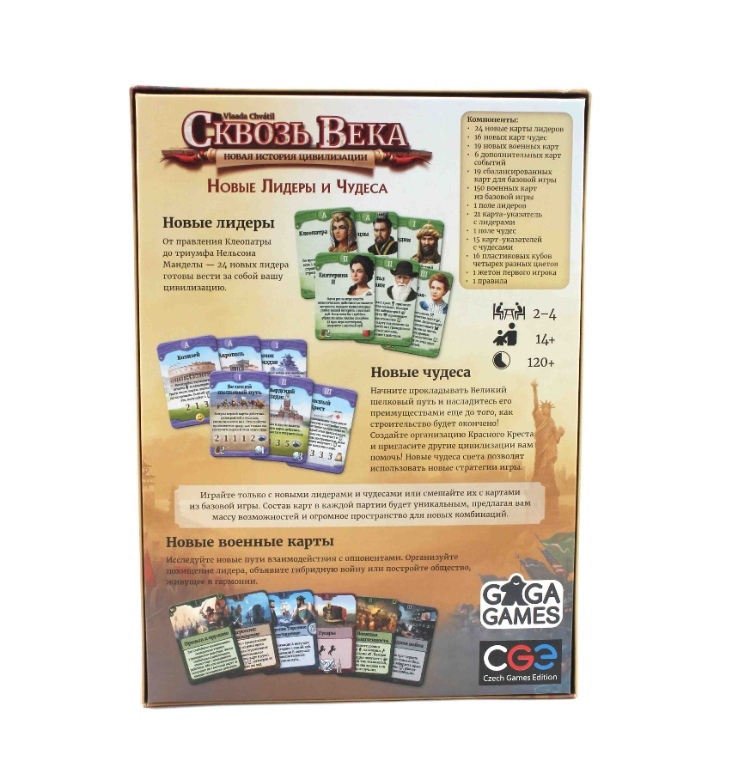 «Сквозь Века: Лидеры и Чудеса» – это долгожданное дополнение к одной из лучших цивилизационных игр. «Лидеры и чудеса» добавляют в игру новые военные карты, новые чудеса света и новых лидеров, которые будут начинать игру отдельными колодами.