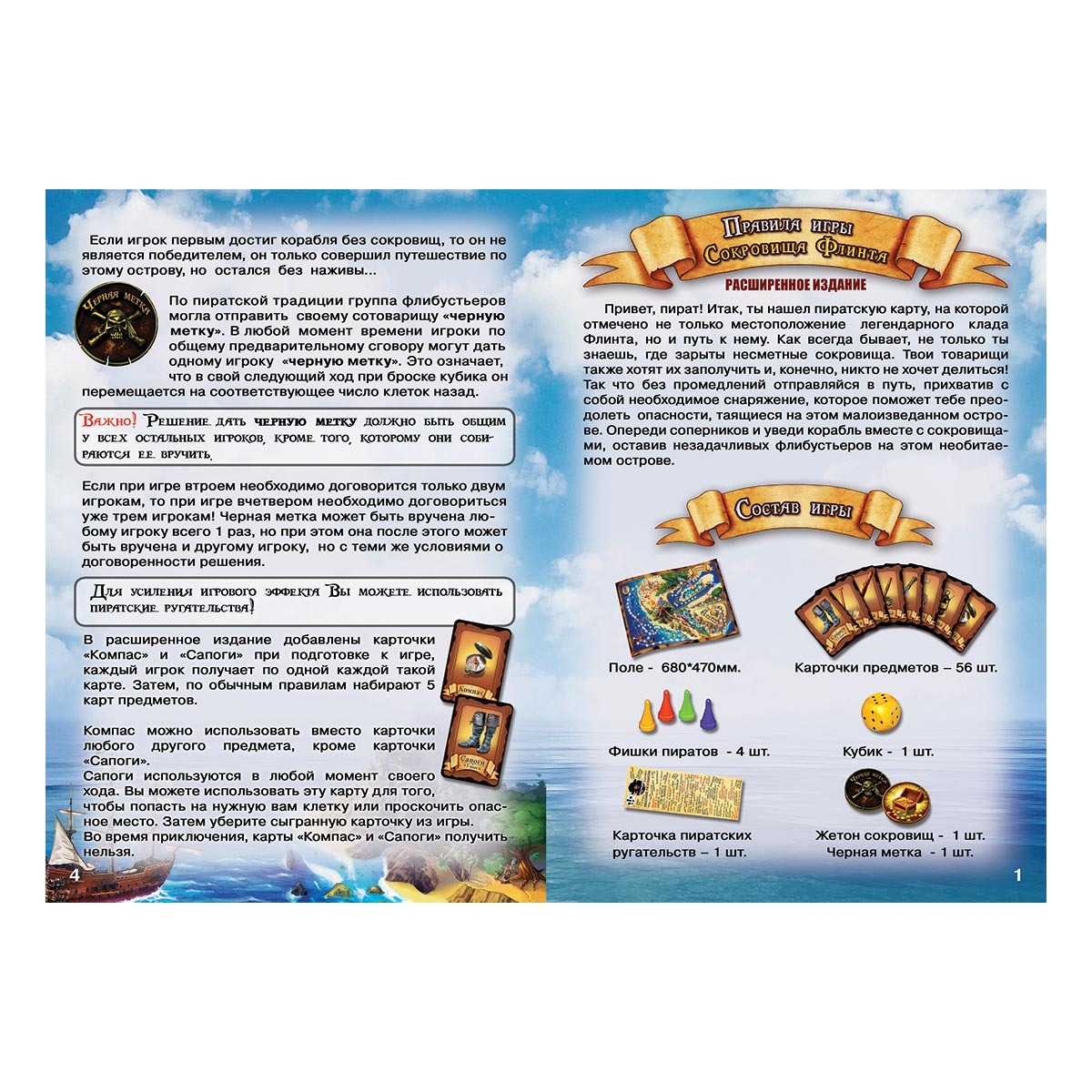 Давным-давно жестокий и коварный пиратский капитан Флинт запрятл свои несметные сокровища на одном из удаленных островов где-то на Карибских Островах. Никто не знал где именно их искать, пока однажды в руки к кладоискателям не попала карта, ведущая к острову сокровищ Флинта. Пришла пора отправиться на поиски пиратских сундоков с Сокровищами Флинта! Собирайте верную команду, снаряжайте экспедицию и будьте готовы дать отпор всем врагам! Сокровища Флинта ждут вас... Настольная игра Скоровища Флинта купить в интернет-магазине настольных игр "Единорог".
