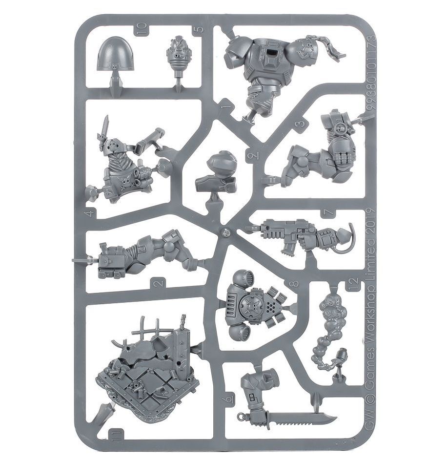 Этот лейтенант облачен в броню модели Mark X Reiver armour, запечатлен в движении - он на полной скорости бежит в сторону врага, скрытый за дымовой завесой. Его можно использовать в любой армии Астартес. А заодно этот сам по себе могучий воин улучшает навыки сражаюшихся рядом с ним бойцов.