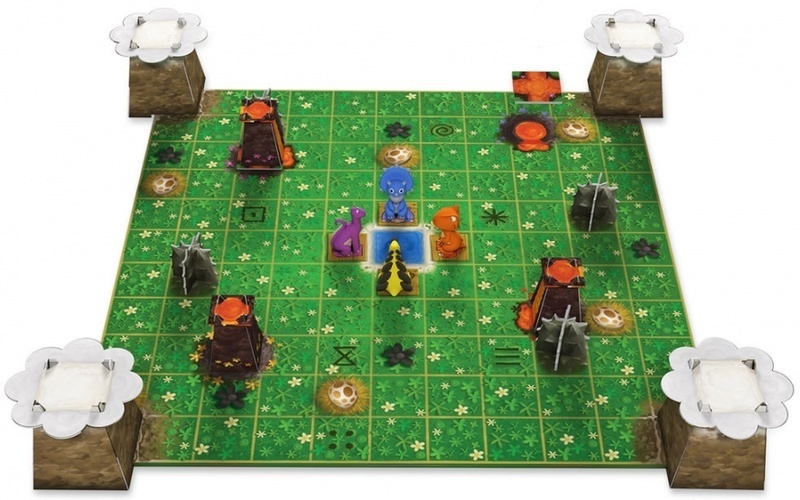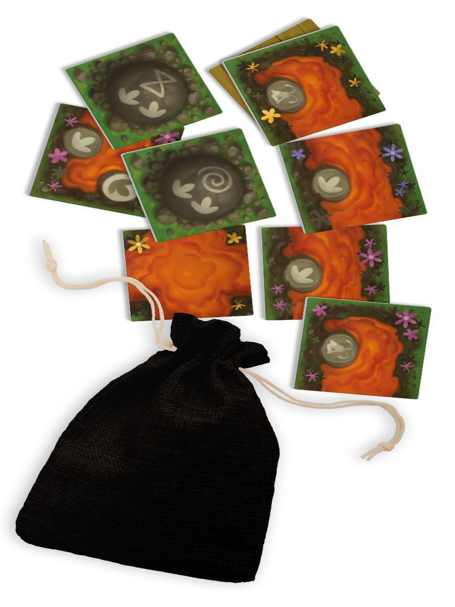 Игра начинается со страшной опасности: четыре динозаврика собрались поиграть в центре долины как раз в тот момент, когда начали извергаться вулканы, а на землю стали падать метеориты. Опасности будут появляться каждый ход, поэтому игрокам придётся действовать обдуманно и сообща, если они захотят спасти динозавриков. А спасти динозавриков, если что – цель этой игры 😉