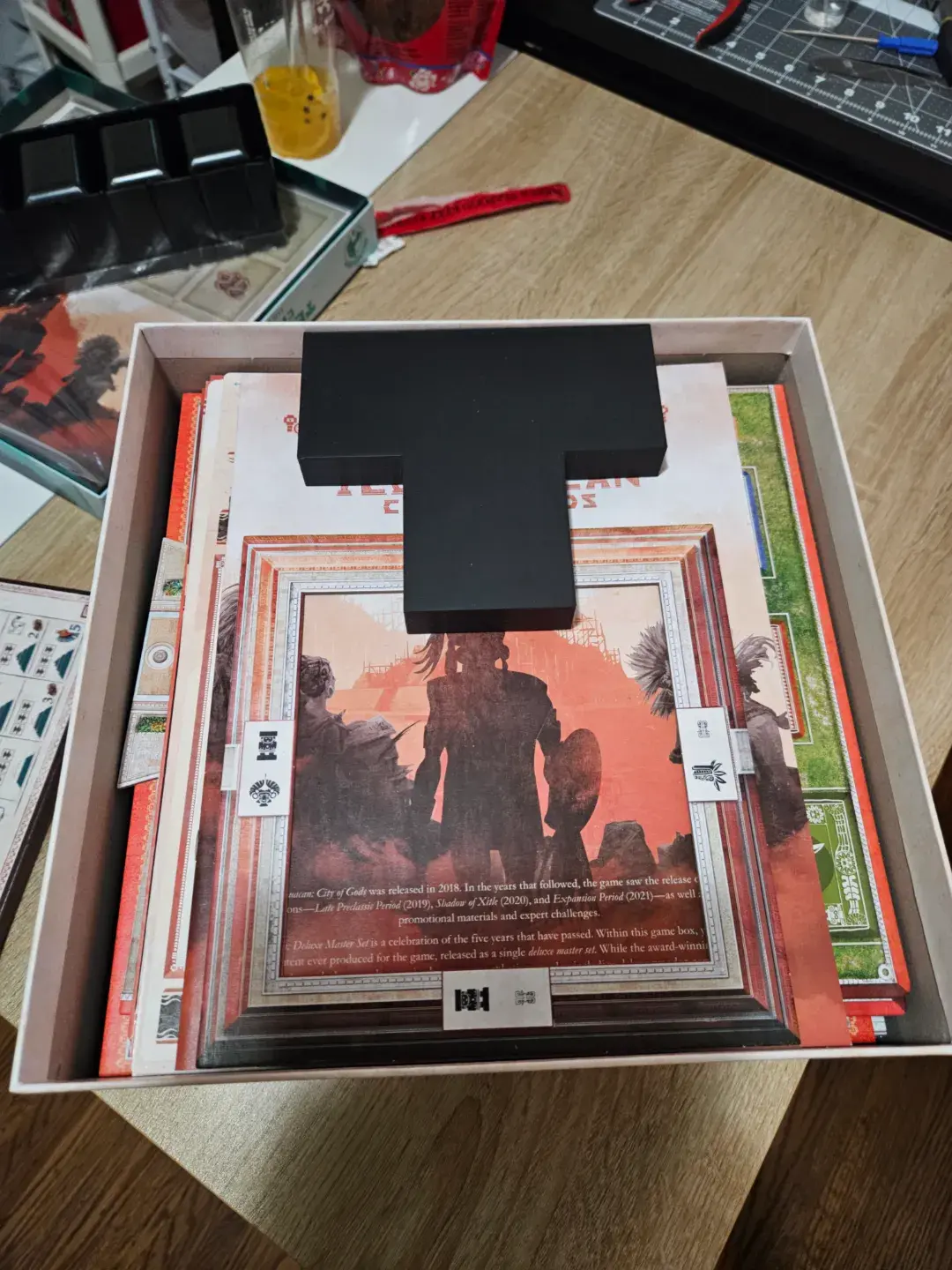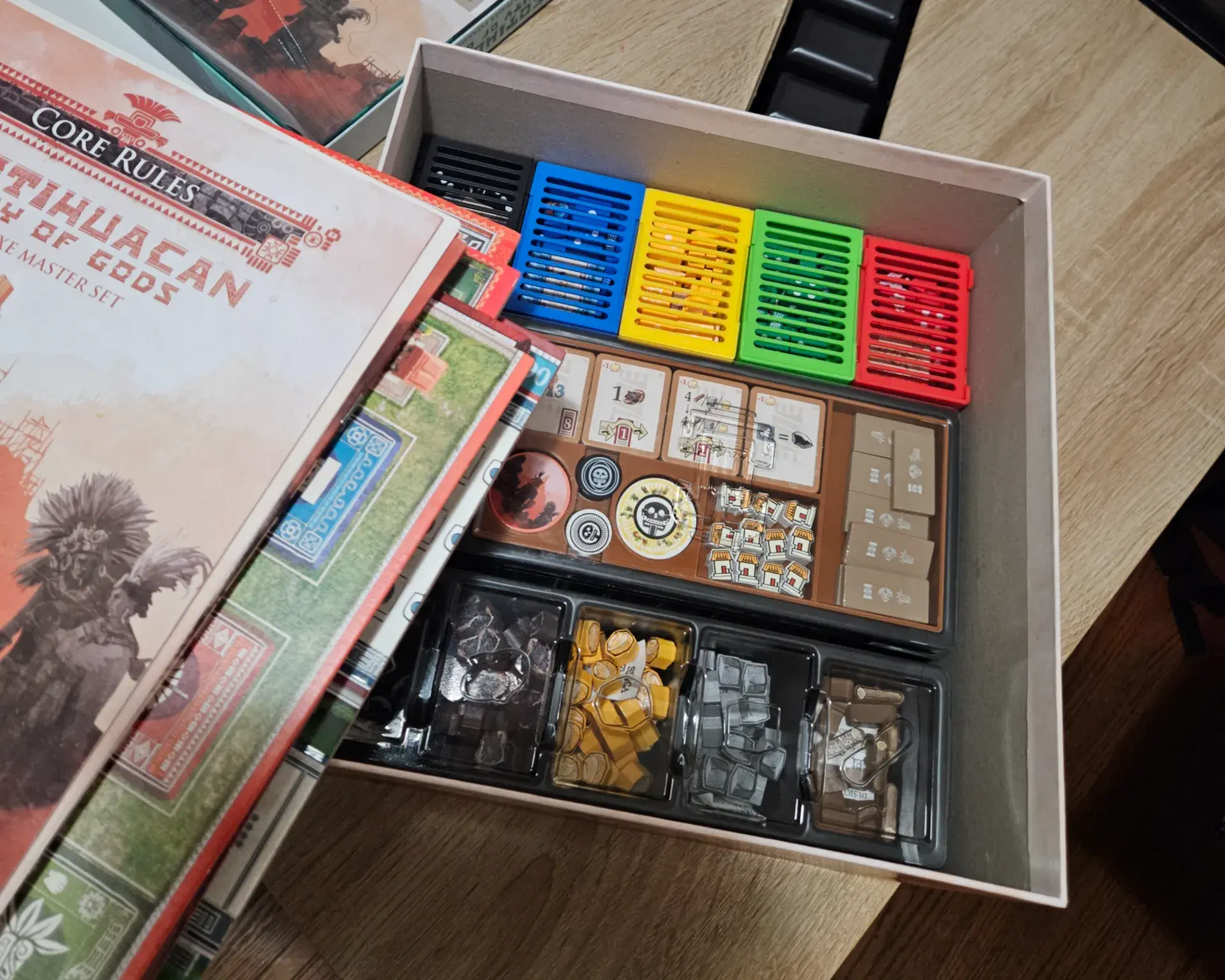 В игре Teotihuacan: City of Gods каждый игрок управляет силой рабочих-кубиков, которые с каждым ходом становятся сильнее. В свой ход игрок перемещает рабочего по модульному полю, выбирая одну из двух зон на тайле локации, на которую он приземляется: одна предоставляет возможность действия (и улучшения рабочего), другая — мощный бонус (но без улучшения).