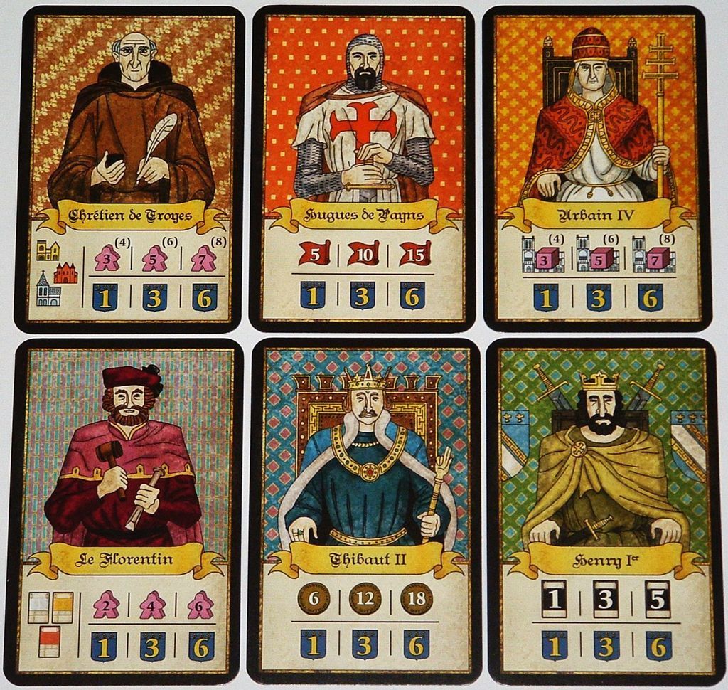 Эти наборы дают доступ к одному из действий настольной игры «Troyes», например, к постройке собора или найму новых рабочих. Игроки могут переманивать рабочих у своих противников и использовать своё влияние для изменения результатов броска - возможность, которую редко можно встретить в настольных играх с кубиками.