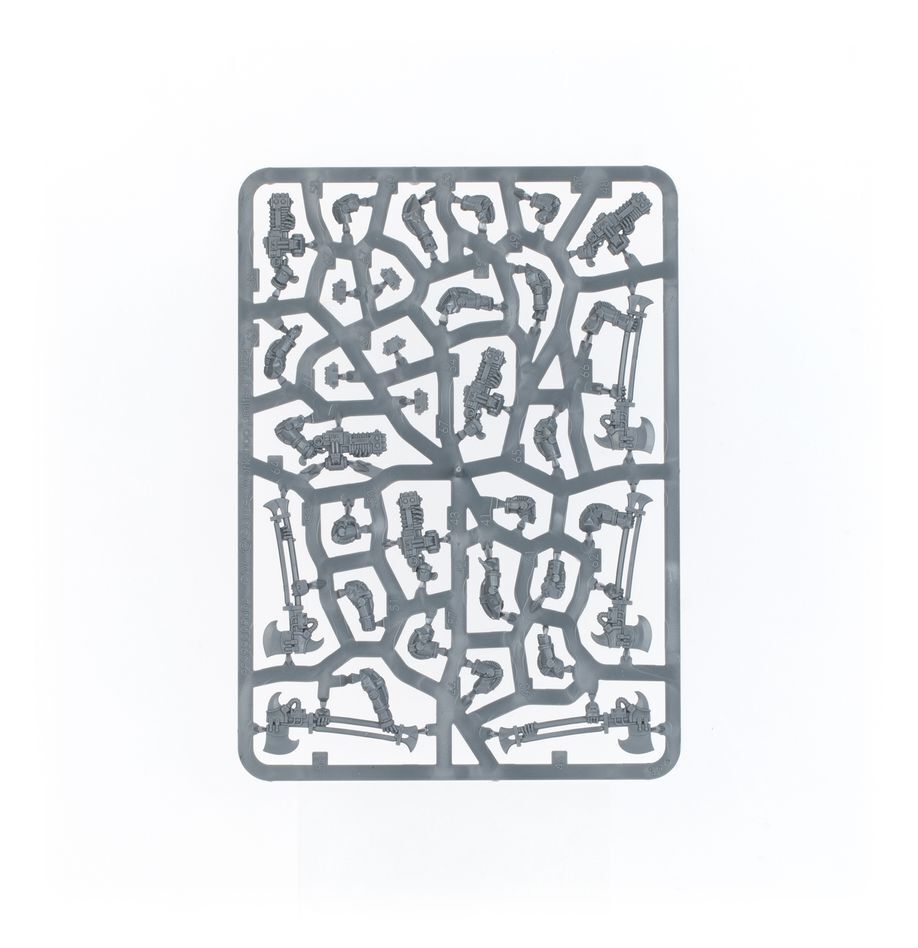 Из этого набора можно собрать отряд Veletaris Storm Section из 10 Велетариев, элитных штурмовых бойцов Солнечной Ауксилии, одетых в усиленную вакуумную броню. Эти солдаты могут быть вооружены разрушительными волькитными зарядами для сжигания целей термическими лучами, либо двуручными штурмовыми топорами, способными разрубить на части самых жестких врагов. Вы можете комбинировать позы рук и тел для обоих типов оружия, добиваясь множества вариантов визуального разнообразия по мере расширения вашей когорты.