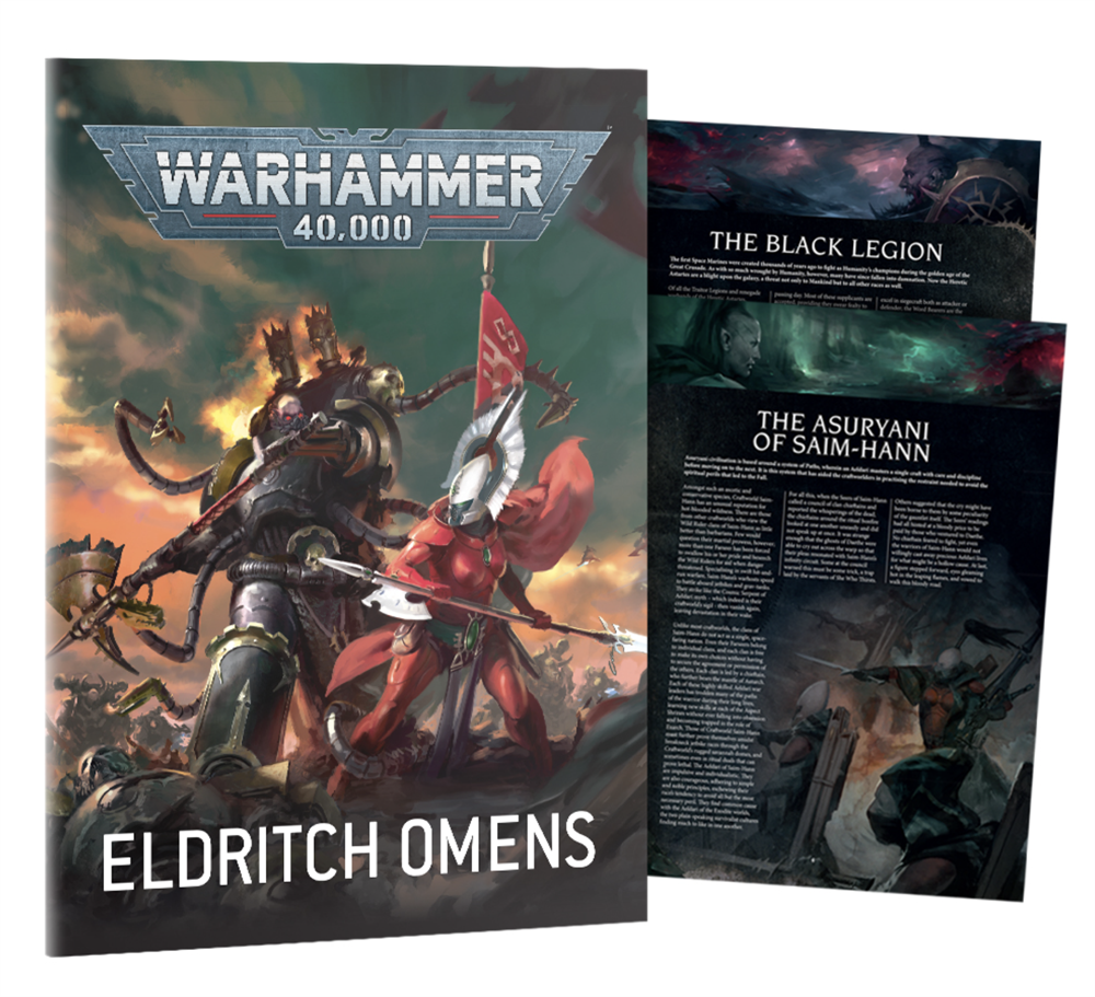 Стартовый набор "Eldritch Omens" рассчитанный на двух игроков, содержит впечатляющие миниатюры новых Аэлдари и Космических Десантников Хаоса. 16 миниатюр, разделенных между двумя противоборствующими сторонами. 15 из них совершенно новые и в настоящее время доступны только в этой коробке, а также один классический Forgefiend, которого можно собрать как Maulerfiend, ориентированного на ближний бой.