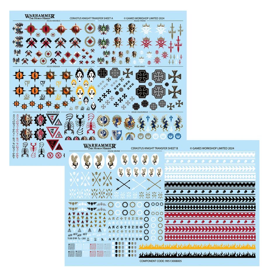 4x листа декалей для рыцарей Церастус Ереси Хоруса - общим количеством в 914 элементов.