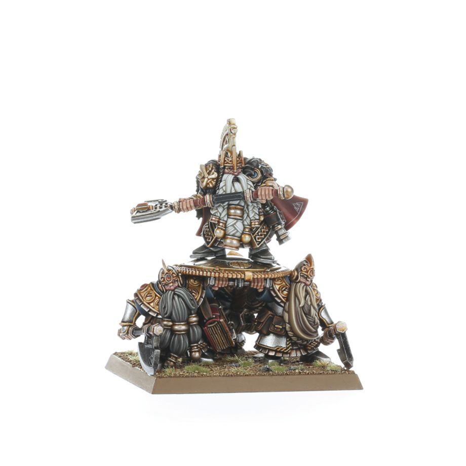 Из этого набора можно собрать двух Гномьих Владык - одного, которого несут на плечах Щитоносцы, и другого, вступающего в битву пешим, возглавляющим армии Гномьих Горных Убежищ. В комплекте два варианта головы с бородами, два украшенных гребня на шлемах и два бронированных тела, которые можно менять местами для создания уникальных героев. Один из них может быть размещён на платформе из Щитоносцев. Также набор включает опции вооружения для создания одного Владыки с топором и щитом, а другого с двуручным оружием, а также дополнительный пистолет в кобуре и значок предков.